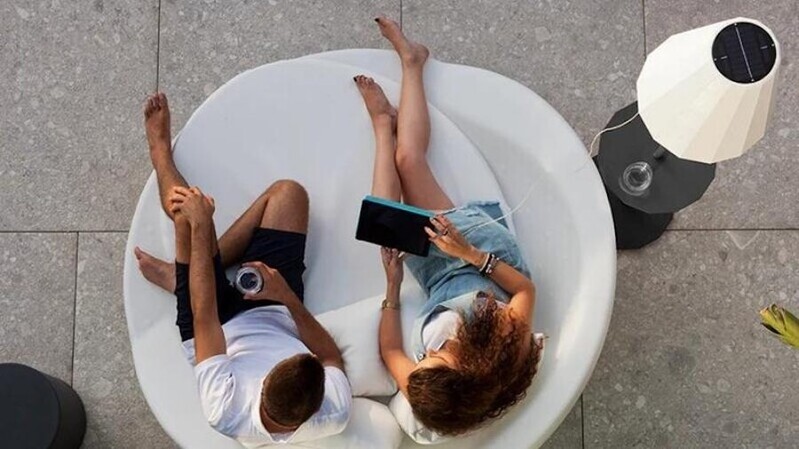 Záhradná stojaca lampa so solárnym nabíjaním.
