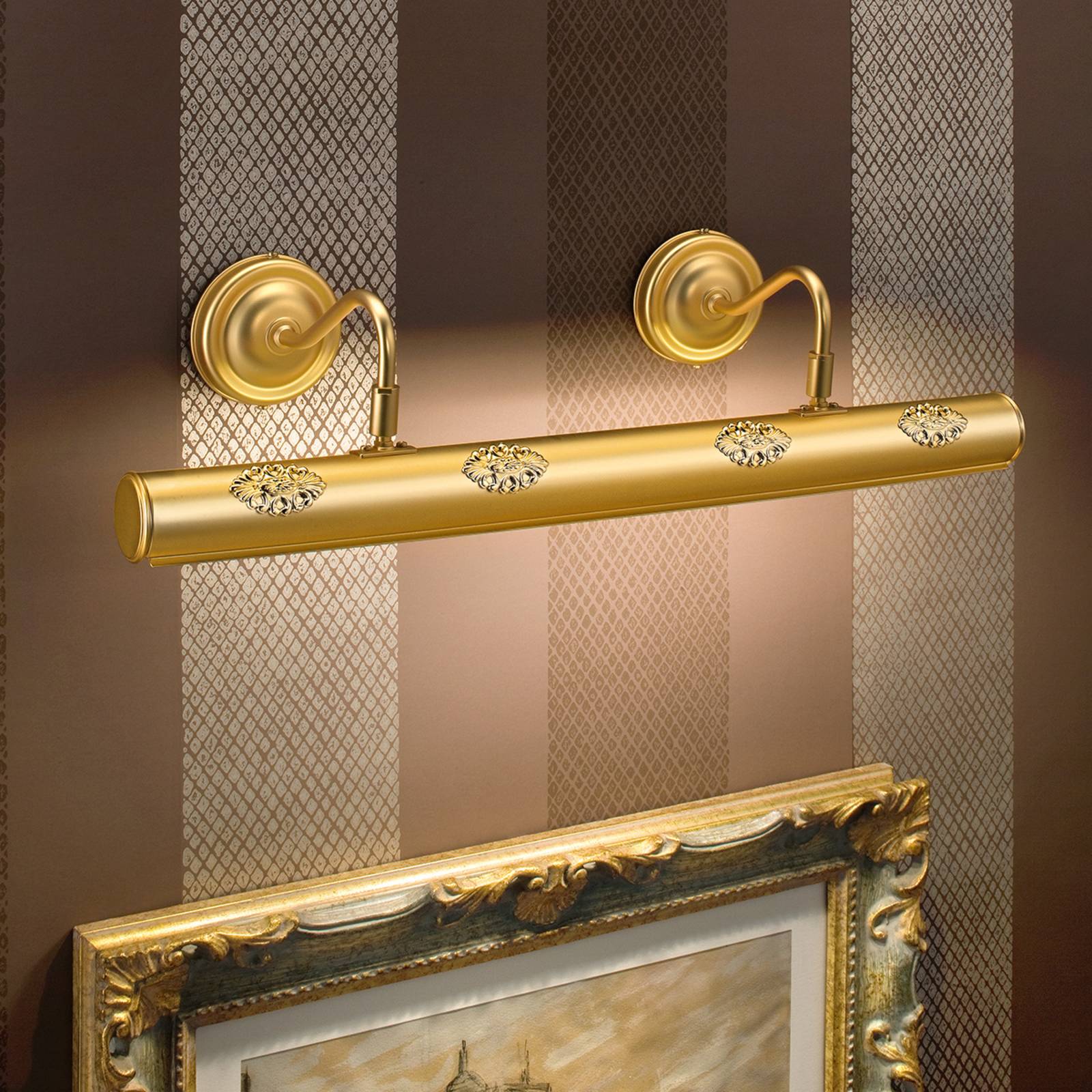 Klasická obrázková lampa Henrika s krásnou dekoráciou štruktúry a pozláteným povrchom V klasickom dizajne sa obrazové svetlo Henrika odporúča na vhodné osvetlenie vášho obľúbeného obrázka, či už je to maľba, umelecká tlač alebo fotografia. Štyri zdroje svetla zabezpečujú rovnomerné osvetlenie osvetlenej oblasti. Svetlá od tohto talianskeho výrobcu sa vyznačujú vysokou mierou elegancie a exkluzivity, pretože sa používajú iba vysoko kvalitné materiály a proces návrhu, ako aj výroba prebiehajú na mieste v Taliansku. Výsledkom sú kvalitné výrobky s luxusným vzhľadom, ktoré ponúkajú osvetlenie na mieru.