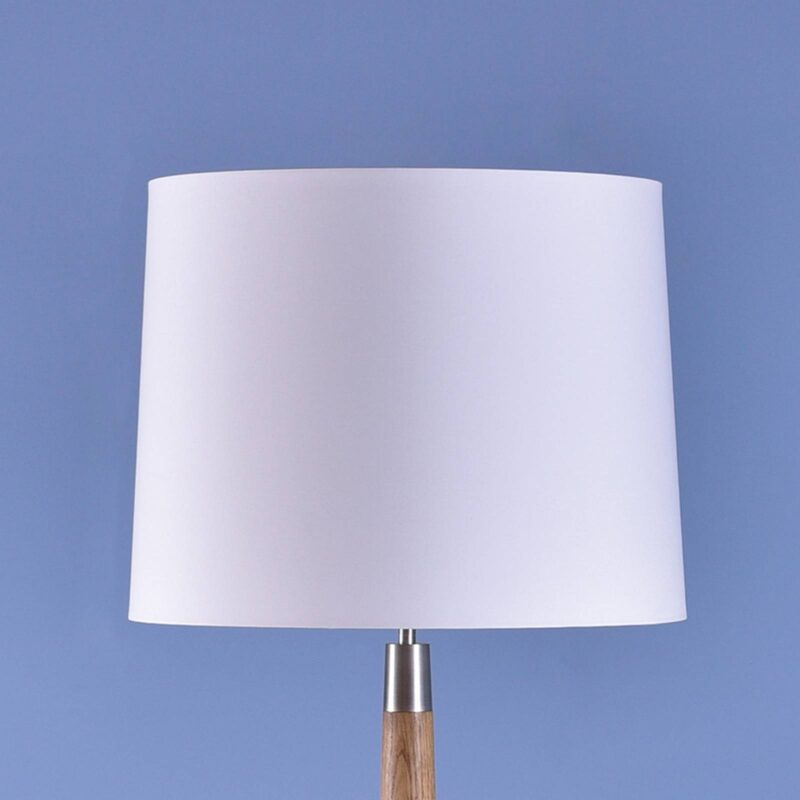 Conico – stojacia lampa s prírodným vzhľadom Svietidlá nemeckého výrobcu HerzBlut odrážajú jeho osobitnú vášeň pre drevo. To je aj prípad stojacej lampy Conico, ktorej podstavec tvorí vysoký štíhly kužeľ z masívneho dreva. Ten je doplnený kovovými detailmi z brúseného niklu. Biele, vertikálne otvorené valcové tienidlo z bavlnenej tkaniny svojím mierne kónickým tvarom kopíruje tvar dreveného rámu. Stojacia lampa Conico dodáva súkromným a verejným obývačkám v modernom a škandinávskom štýle zariadenia prirodzený a útulný nádych – s vypínačom na kábli Príspevky spoločnosti HerzBlut k ochrane životného prostredia – Neutrálne zásobovanie podnikových prevádzok a výroby energiou s nulovými emisiami CO² – Vyrobené v Nemecku – Regionálni dodávatelia – Certifikát FSC pre výrobky z dreva – Ekologicky šetrné obaly – Reklamné materiály vyrobené výlučne z prírodných materiálov – Svietidlá sú vyrobené z prírodných a obnoviteľných surovín – LED diódy môže výrobca vymeniť – Časti svietidla sú 100 % recyklovateľné – Vlastná opravárenská dielňa