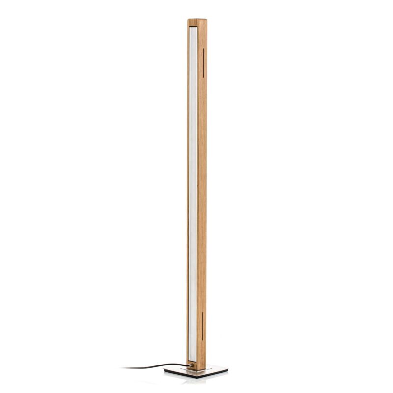 Hranatá stojacia LED lampa Leonora s funkciou stmievania Kvalitná stojacia LED lampa Leonora od značky HerzBlut sa vďaka svojmu nenápadnému dizajnu dá ľahko integrovať do existujúcich interiérov. Moderný svetelný zdroj pozostáva z dlhého tienidla z masívneho dreva, ktoré stojí na kovovom podstavci s matným povrchom z brúseného niklu. Energeticky úsporné LED diódy sú zoradené na jednej strane úzkeho stĺpika. Mimoriadne útulné osvetlenie sa dosiahne umiestnením svetelného prvku smerom k stene. Leonora sa dá ovládať priamo pomocou tlačidiel pripevnených na svietidle. Nožný spínač slúži na zapínanie a vypínanie a dotykovým stmievačom možno regulovať osvetlenie podľa potreby. Integrovaná technológia stmievania umožňuje plynulé nastavenie jasu a farby svetla (2 200 – 4 000 K). Čím nižšia je intenzita, tým teplejšie svetlo svieti do miestnosti. Vysoká hodnota CRI (>90) tiež zabezpečuje, aby sa farby zobrazovali čo najmenej skreslene. Príspevky spoločnosti HerzBlut k ochrane životného prostredia – CO² neutrálne dodávky energie pre firemné priestory a výrobu – Vyrobené v Nemecku – Regionálni dodávatelia – Certifikácia výrobkov z dreva podľa FSC – Ekologicky šetrné obaly – Reklamné materiály vyrobené výlučne z prírodných materiálov – Svietidlá sú vyrobené z prírodných a obnoviteľných surovín – LED diódy môže výrobca vymeniť – Časti svietidla sú 100 % recyklovateľné – Vlastná opravárenská dielňa
