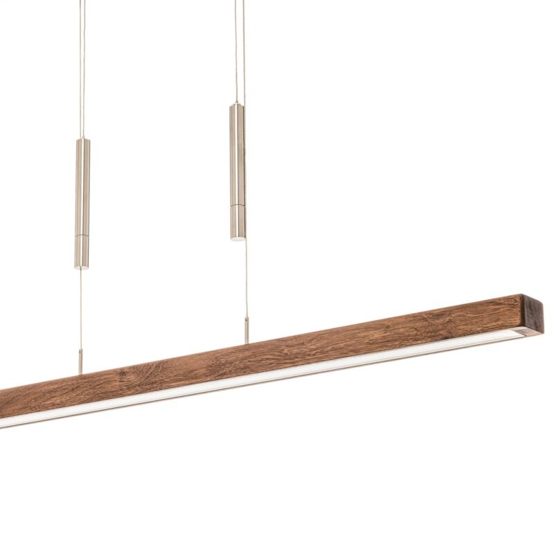 Stmievanie pomocou tlačidla alebo spínača svetla pomocou závesného svetla Leonora LED Prirodzený vzhľad lišty Leonora dokonale zapadá do moderných obytných priestorov a je skutočným pútačom pozornosti nad jedálenským stolom. Leonora pozostáva z kovového rámu s povrchovou úpravou matný nikel brúsený, ručne vyrobeného tienidlo na lampu z masívneho dreva a akrylových krytov na LED diódach, ktoré zabezpečujú osvetlenie bez oslnenia. Výšku zavesenia (95 – 160 cm) žiarovky je možné ideálne nastaviť pomocou ťažných závaží. Téma prírody sa tiahne sériou Leonora ako červená niť. Svetelný zdroj má CRI (index vykreslenia farieb) viac ako 90, čo je veľmi blízke farebné podanie slnečného žiarenia. Výrobca HerzBlut prikladá veľkú dôležitosť aj udržateľnosti. Máte napríklad možnosť nechať si energeticky účinné pásky LED vymeniť v zákazníckom servise, ak dosiahli svoju životnosť, aby sa šetrilo svietidlo. Ďalším rozhodujúcim argumentom pre Leonoru je nekomplikované a plynulé stmievanie pomocou technológie dim-to-warm. Jas a farba svetla (2 200 – 4 000 K) je možné prispôsobiť atmosfére pomocou dotykového stmievača pripevneného k žiarovke. Alternatívne môžete tiež použiť systém click & dim, ktorý je možné ovládať pomocou spínača svetiel bez ďalších zariadení. Príspevok HerzBlut k ochrane životného prostredia – CO² neutrálne dodávky energie pre miesta a výrobu spoločnosti – Vyrobené v Nemecku – Regionálni dodávatelia – Certifikácia výrobkov pre drevo podľa FSC – Ekologické obaly – Reklamný materiál vyrobený výlučne z prírodných materiálov – Svetlá sú vyrobené z prírodných a obnoviteľných surovín – LED diódy môžu byť vymenené výrobcom – Diely svietidla sú 100% recyklovateľné – Vnútorná opravovňa
