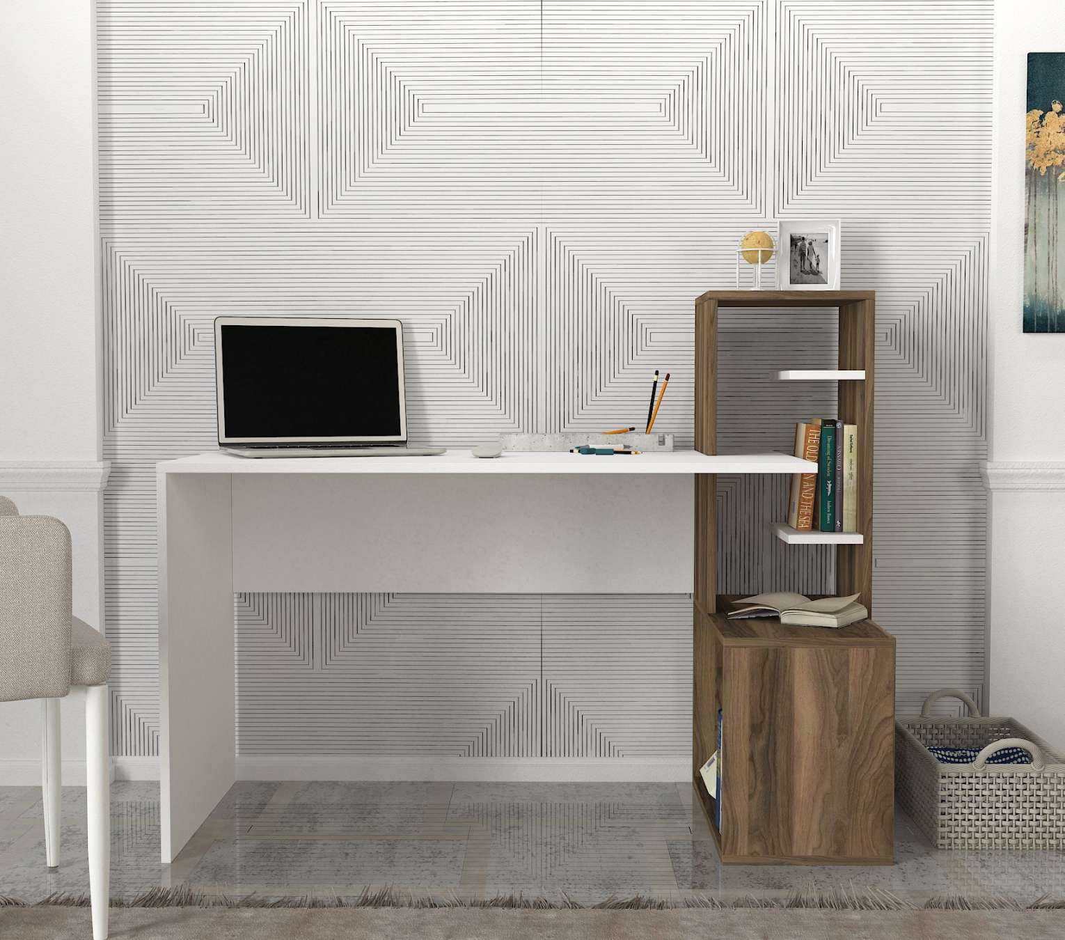 HIDE písací stôl, biela/orech