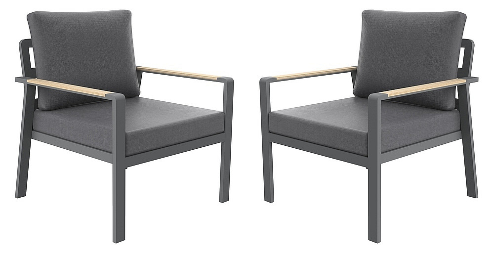 Luxusné hliníkové kreslá v čiernom prevedení, ktoré skvele zapadnú do každého exteriéru či interiéru.