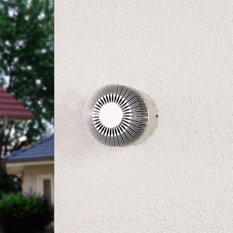 Vynikajúce osvetlenie s exteriérovým LED nástenným svietidlom Lennias Lennias nie je v žiadnom prípade jednoduché alebo nezaujímavé nástenné svietidlo, ale skôr špeciálny zdroj svetla. Okrúhle telo svietidla je vybavené vejárovitou štruktúrou, vďaka čomu vznikajú skvelé svetelné efekty, pretože sa svetlo z LED diód premieta na fasádu, resp. na stenu, na ktorej je namontované, pričom pripomína svätožiaru. Lennias možno bez problémov používať aj ako exteriérové nástenné svietidlo, vďaka čomu môžu obyvatelia a návštevníci domu tento individuálny efekt pozorovať už z diaľky, kedy na moment dozaista zostanú stáť v úžase. Ďalšou možnosťou je použiť Lennias ako nástenné svietidlo v kúpeľni, pretože vďaka stupňu ochrany IP54 je dostatočne chránené pred vniknutím vody a vlhkosti. Ak si chcete v kúpeľni vytvoriť oázu pohody, bude pre vás inštalácia svietidla Lennias prvým krokom, pretože jeho svetlo dodá charakteru miestnosti individuálnosť a hodnotu.