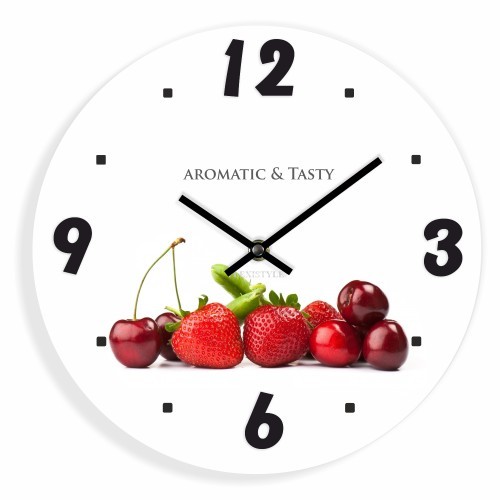 Hodiny do kuchyne s červeným ovocím
