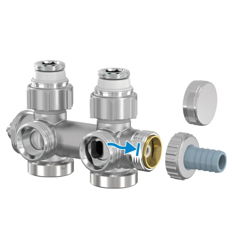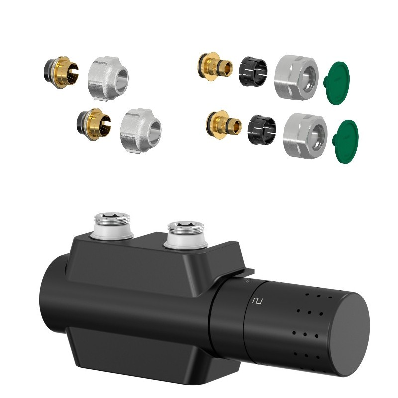 Pripojovacia armatúra UNI-SADA s integrovaným termostatickým ventilom pre vykurovacie telesá s vnútorným závitom 1/2″ alebo s vonkajším závitom 3/4″ Eurokonus. Je vhodná pre kúpeľňové a vykurovacie telesá so stredovým dopojením . Armatúra kombinuje rohový a priamy tvar ventilu a má univerzálne pravé alebo ľavé pripojenie hlavice . Sadu ponúkame v troch farbách (chróm, čierna a biela ). Ventily dodávame vrátane zverného šróbenia na Cu aj na PEX-AL-PEX. Ventil je určený na pripojenie radiátorov na rozvody TÚV s vývodom zo steny. Nie je možné kombinovať s elektrickou vykurovacou tyčou. Termostatickú armatúru so závitovou prípojkou M 30 × 1,5 je možné prednastaviť pomocou špeciálneho kľúča . Vypúšťanie a plnenie je možné jednoduchým naskrutkovaním bežného hadicového šróbenia . Termostatická hlavica s kvapalinovým čidlom so závitovou prípojkou M 30 × 1,5. Kompletná sada obsahuje: 1× ventil UNI-SADA 1× hlavica 2× redukciu 1/2, 3/4“ 2 kusy zverných šróbení pre plastové rúrky a rúrky AL – PEX, s maticou veľ. kl. 27, O-krúžok, zvierací krúžok a oddeľovacie tesnenie. Uvedené šróbenia je možné použiť tiež k pripojovacím šróbením pre telesá VK. 2 kusy zverných šróbení elasticky tesniace, pre medené rúrky a rúrky z mäkkej a ušľachtilej ocele, Ms-upínacie puzdro pre vysoké uťahovacie sily. Maticu sa rebrami uťahovať kľúčom veľ. 30 až na doraz. Vhodná pre Eurokonus 3/4”. Technické dáta: Súčasti vyrobené z poniklovanej mosadze a plastu Tesniace materiály: EPDM Max. prevádzková teplota: 110 °C, 130 °C krátkodobo Max. prevádzkový tlak: 10,0 bar Dostupné farby: chróm čierna farba biela farba ZÁRUKA 2 ROKY(GT)