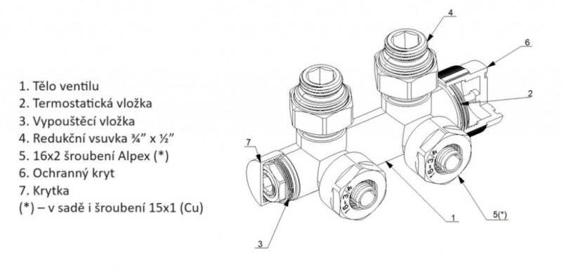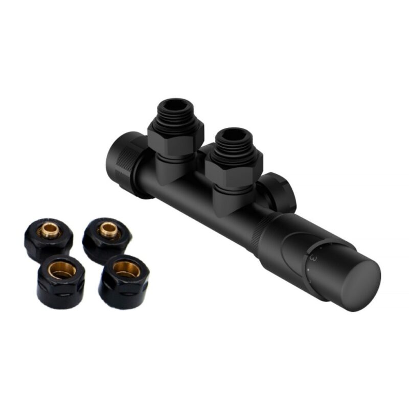 Univerzálna termostatická (pravý aj ľavý) súprava HYBRID je určená na napojenie kúpeľňových radiátorov s vývodom tzv. na stred radiátorov s rozstupom 50 mm . Ventil je určený pre pripojenie radiátorov na rozvody TÚV s vývodom zo steny . Súprava je vrátane zverného šróbenia Ø 15×1 (Cu) a Ø 16×2 (Alpex) . Prívod je vždy na strane termostatickej hlavice . Elektrickú vykurovaciu tyč je možné inštalovať na ľubovoľnú stranu radiátora, nemožno inštalovať do ventilu . Ventil dodávame v troch farebných variantoch (chróm, biela a čierna farba) Ventil je určený na pripojenie radiátorov na rozvody TÚV s vývodom zo steny. Do ventilu nie je možné inštalovať do ventilu. Technické parametre: Univerzálne prevedenie (ľavé aj pravé) Maximálna pracovná teplota: 120 °C Maximálny pracovný tlak: 10 bar Pripojovací rozstup 50 mm (D50) montáž na Alpex rúrky 16 x 2 aj na Cu15 mm Termostatická hlavica, typ RAY, kvapalina Pripojenie: M30x1,5 Maximálna teplota okolia: 50 °C Regulačných stupňov: 5 Rozsah regulácie: 6 – 28 °C Ochrana pred mrazom: 6 °C Kompletná sada obsahuje: 1× ventil (univerzálny prevedený) 1× termostatickú hlavicu 2× redukciu 1/2, 3/4“ 2× zvernú spojku Cu 15 × 1 mm / PEX-AL-PEX 16 × 2 mm Dostupné farby ventilu HYBRID: lesklý chróm čierna biela ZÁRUKA 2 ROKY(GT)