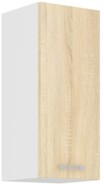 Horná skrinka SARIA patrí ku komponentom kuchyne SARA, vďaka ktorým si môžete poskladať kuchyňu podľa vašich predstáv. Poteší vás jej výborná cena.Je vyrobená z kvalitných LTD dosiek vo farebnom prevedení DUB SONOMA. Korpus skrinky je v bielej farbe. Skrinka je jednodverová. Úchyty dvierok sú vyrobené z odolného plastu.Kuchyňa SARA poteší všetkých užívateľov, ktorí majú radi jednoduché a čisté línie a zároveň praktické využitie. Je v modernom a dizajnovom prevedení. Je veľmi priestranná a funkčná. Vďaka veľkému výberu komponentov si poskladáte svoju kuchyňu v menšom aj väčšom priestore.Dodávame v demontovanom stave.