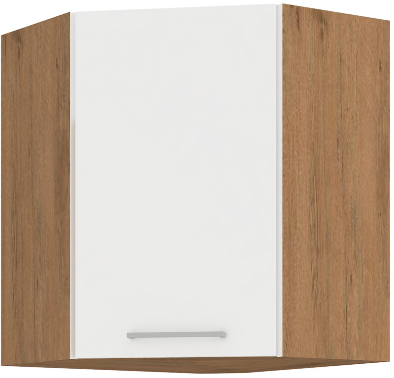 Horná rohová skrinka VIDO je moderná a elegantná skrinka kuchynského nábytku VIDO. Aj vďaka nej si vytvoríte kuchyňu podľa vašich predstáv.Korpus je vyrobený z kvalitných LTD dosiek. Čelo skrinky je z MDF materiálu. Farebné prevedenie je v kontraste dub lancelot a biely lesk. Korpus je vo farbe dub lancelot. Rukoväť je vyrobená z plastu. Skrinka je jednodverová.Kuchyňa VIDO svojim prevedením poteší všetkých zákazníkov, ktorí majú radi jednoduchosť, praktickosť a zároveň prijateľnú cenu. Je v modernom prevedení s čistými líniami. Je priestranná a funkčná. Vďaka veľkému výberu kuchynského nábytku, ktoré Vido poskytuje, si poskladáte svoju kuchyňu podľa vašich predstáv.Dodávame v demontovanom stave.