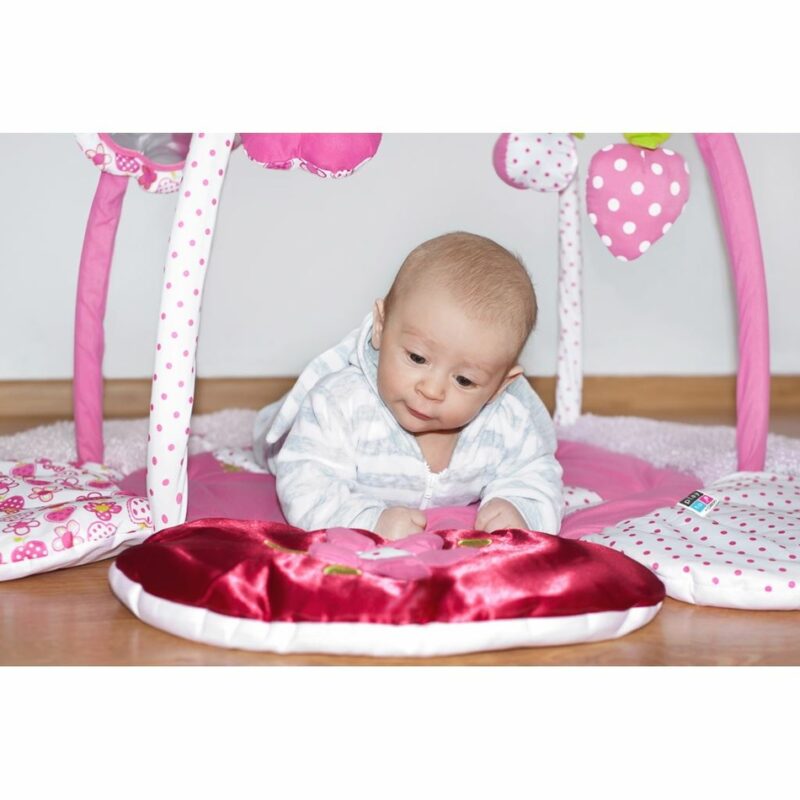 Doprajte svojmu dieťatku bezpečný priestor, báječnú zábavu i odpočinok s touto krásne farebnou dekou pre hru aj vzdelávanie. Táto deka rozvíja zmysly hmatu, zraku aj sluchu vďaka šuštiacim a pohyblivým častiam. Príjemný a mäkký materiál umožňuje pohodlné ležanie na brušku alebo chrbte a umožňuje slobodu pohybu dieťaťa. Má hrazdičku so zavesenými hračkami, ktorú možno odopnúť a používať samostatne.