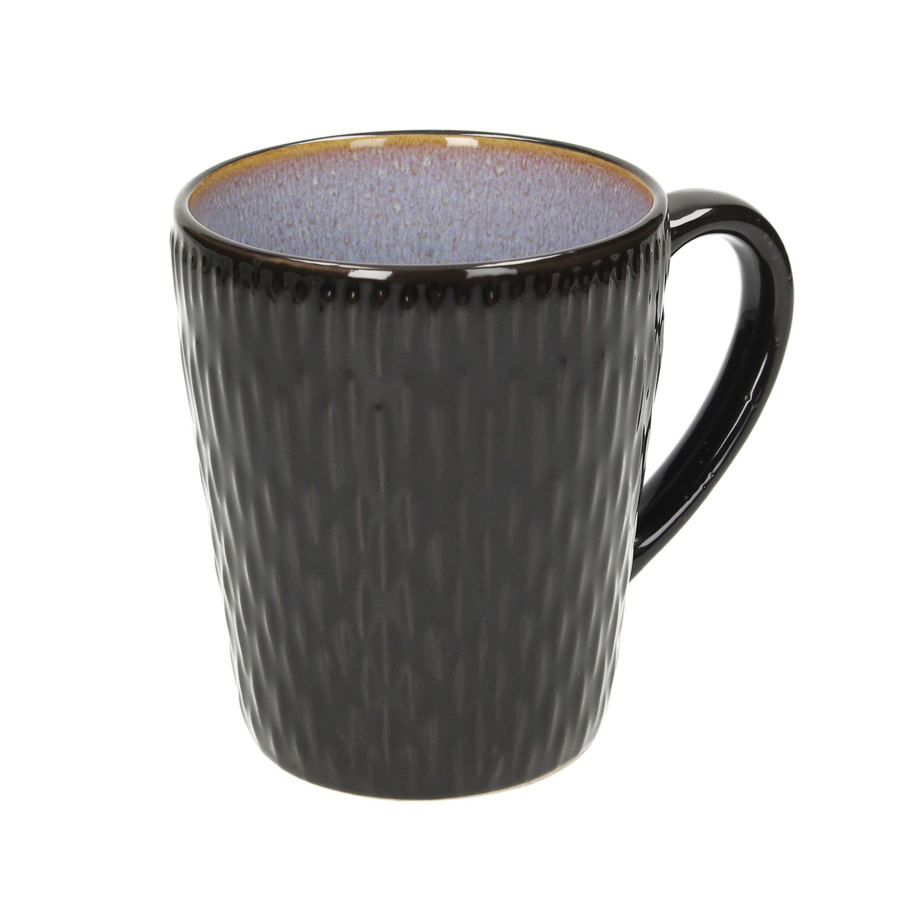 Keramický hrnček v jedinečnej čierno-modrej farebnej kombinácii. Bodky a mierne vypuklá štruktúra mu dodávajú originálny charakter. Bude ideálny na podávanie vašich obľúbených horúcich nápojov.