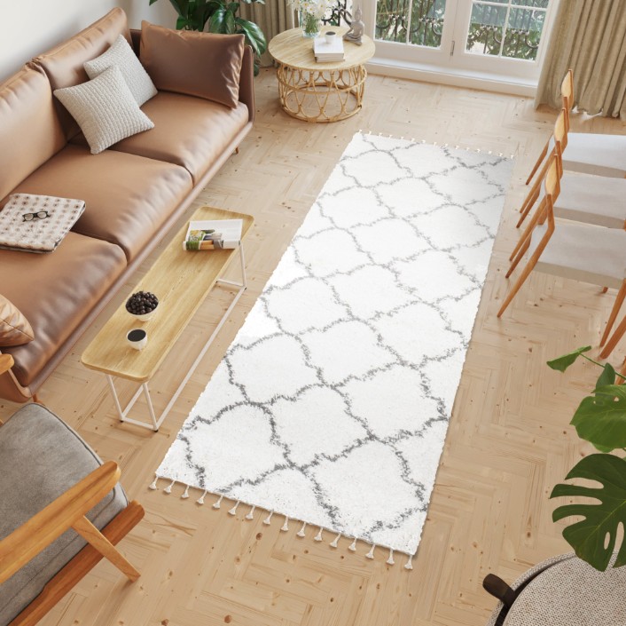 Huňatý biely vzorovaný behúň Šírka: 100 cm | Dĺžka: 160 cm