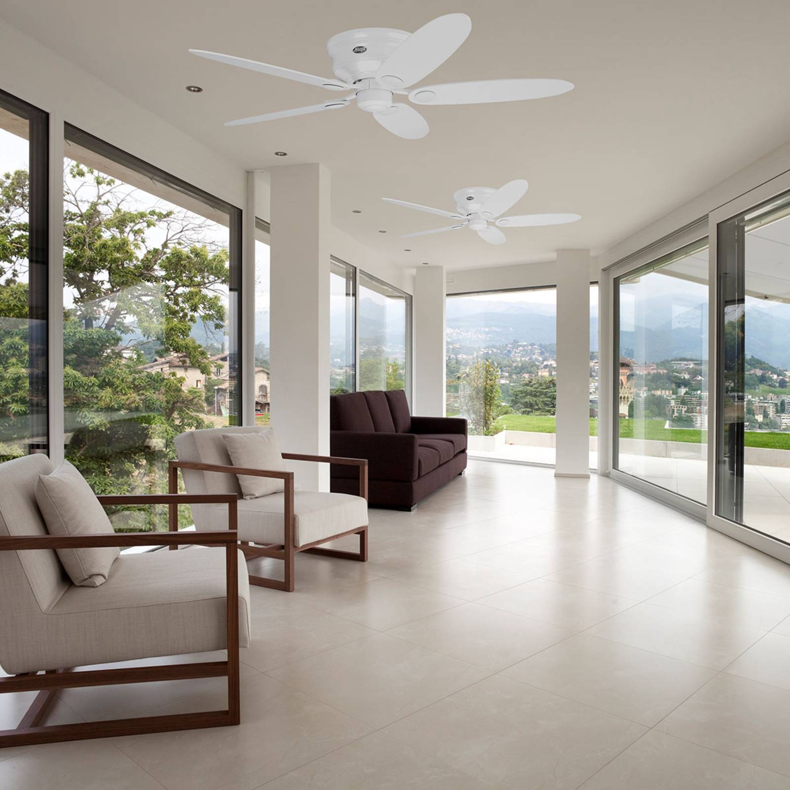 V bielej farbe: stropný ventilátor Low Profile III Low Profile III je ventilátor, ktorý sa vyznačuje veľkou funkčnosťou, ako aj schopnosťou premeny. Dodávaný je aj s druhou sadou lopatiek s menším priemerom. Celkový priemer je potom namiesto 132 cm len 113 cm. Funkcie Vybavený ťahacím spínačom, ktorým sa pohodlne dajú nastaviť jednotlivé rýchlosti a príkony. V miestnostiach s vysokými stropmi sa odporúča použiť predlžovacie tyče, ktoré sú dostupné ako extra príslušenstvo. Ventilátor sa môže v spätnom chode použiť aj v zime na cirkuláciu ohriateho vzduchu v miestnosti. Optimálnym rozložením vzduchu v miestnosti sa tiež môžu znížiť náklady na energiu. Technické údaje Výkon podľa rýchlosti: – 17 wattov pri 96 ot./min – 42 wattov pri 155 ot./min – 65 wattov pri 182 ot./min Zvláštne vlastnosti Vstavaný motor WhisperWind® umožňuje používať ventilátor Low Profile III v spálňach a iných miestnostiach určených na oddych.