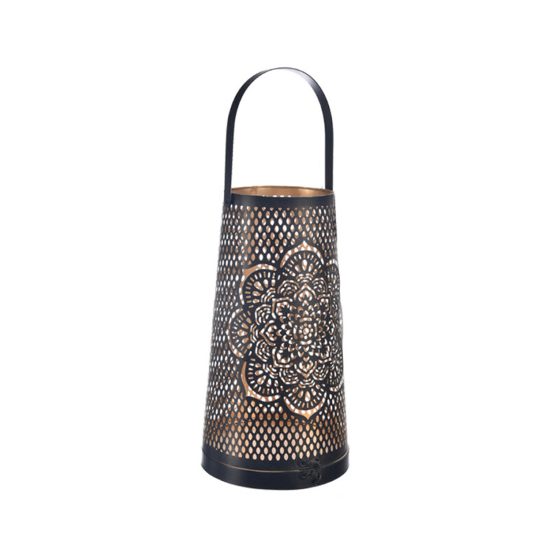Zaujímavý svietnik bude skvelou ozdobou interiéru aj exteriéru. Je zdobený mandalou a má dierovaný povrch. Vďaka uchu ho kamkoľvek zavesíte.