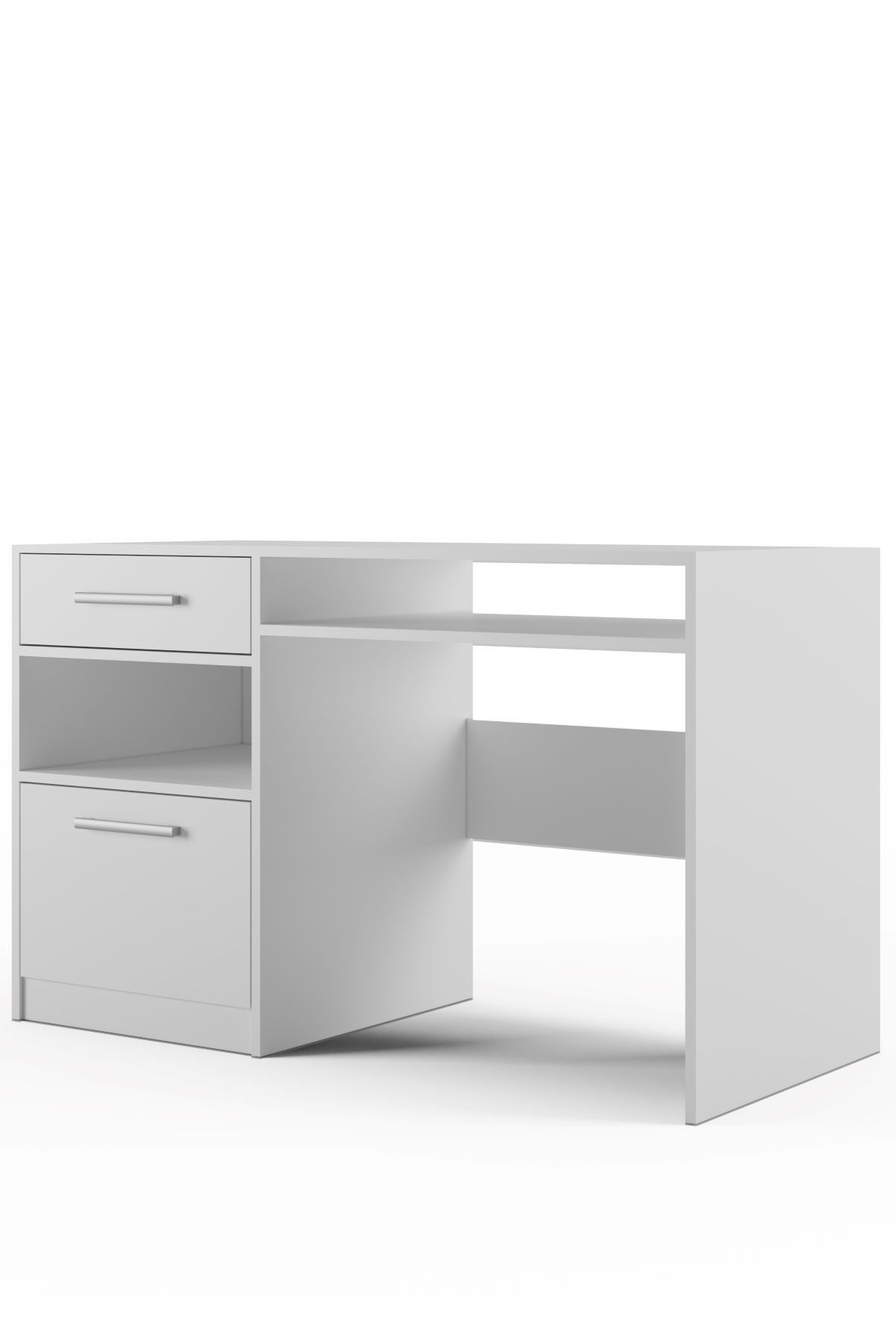 Štýlový písací stolík INDI vynikne v každom modernom interiéri.Stolík disponuje úložným priestorom v podobe zásuvky, pod ktorou je menší otvorený priestor a skrinky s dvierkami.Stolík má aj praktickú dosku na klávesnicu.Elegantnosť stolíka vyzdvihujú plastové úchyty v striebornej farbe, ktoré príjemne kotrastujú s jeho bielým farebným prevedením.Stolík je vyrobený z kvalitnej LTD dosky, ktorá je nenáročná na údržbu.Rozmery nábytku: (š/h/v): 125 x 82 x 58 cm.Dodávame v demontovanom stave