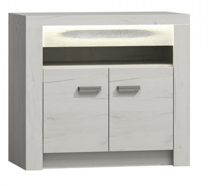 Nízka komoda I-10 zo sektorového nábytku INDIE. Je možné dokúpiť efektné LED osvetlenie. Rozmery v/š/h 73 x 96 x 42 cm. Nábytok je vyrobený z kvalitnej LTD dosky v kombinácii s masívnym drevom. Patinovaná úprava. Úchyty majú odtieň aluminium. Dodávame v demontovanom stave. Sektorový nábytok INDIE je navrhnutý v nestarnúcom vintage štýle. Jedinečný vzhľad nábytku vnesie do miestnosti nezameniteľnú atmosféru. Z 25 jednotlivých elementov môžete zariadiť útulnú obývačku, jedáleň či dokonca pracovňu.