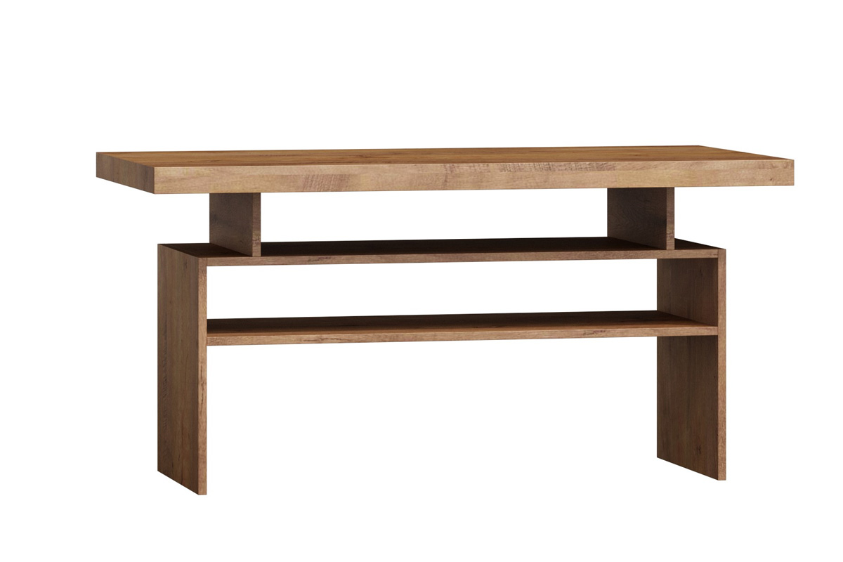 Konferenčný stolík I-13 je jedným z 25 prvkov sektorového nábytku INDIE. Tento nábytok je navrhnutý v štýlovom dizajne s jasnou štruktúrou dreva. Spolu s výnimočnou hrúbkou dosky a patinovou úpravou dáva nábytku rustikálny nádych. Stolík I-13 ponúka 2 odkladacie poličky ako aj hornú dosku, vhodnú na položenie dekorácie či občestvenia. Nábytok je vyrobený z kvalitnej LTD dosky, ktorá je opatrená ochrannou ABS hranou. Farebné prevedenie: jaseň svetlý.  Rozmery (v/š/h): 60 x 120 x 60 cm. Hrúbka dosky je 16 /48 mm. Dodávame v demontovanom stave.Sektorový nábytok INDIE je v ponuke v 4 farebných odtieňoch: jaseň tmavý, dub grandson, jaseň svetlý alebo craft biely. Ponúka viacero elementov, z ktorých si môžete zariadiť útulnú obývačku, jedáleň, spálňu ale aj pracovňu. Variabilita a funkčnosť nábytku zaručí praktické využitie priestoru. Jedinečný vzhľad nábytku vnesie do  každej miestnosti nezameniteľnú atmosféru a dodá mu šmrnc.