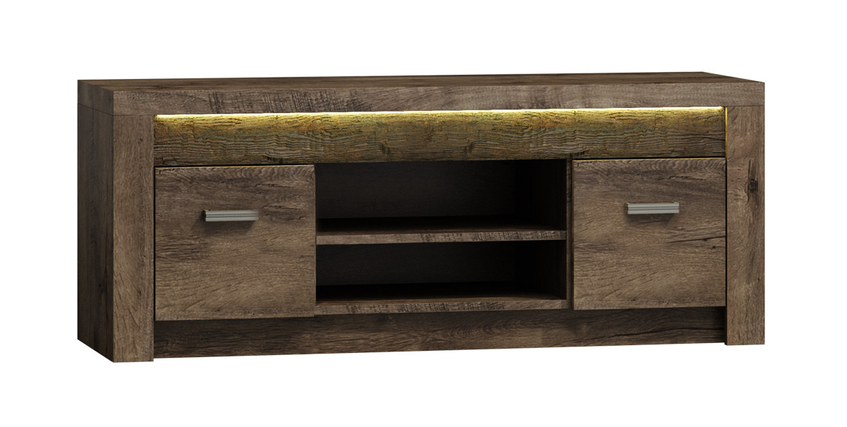 TV stolík I-09 je jedným z 25 prvkov sektorového nábytku INDIE. Tento nábytok je navrhnutý v štýlovom dizajne s jasnou štruktúrou dreva. Spolu s výnimočnou hrúbkou dosky, patinovou úpravou a kovovými úchytmi dáva nábytku rustikálny nádych. Stolík I-09 má v bočných častiach dvierka. Stredová časť ponúka 2 otvorené poličky. Horná doska vytvára priestor pre položenie TV prijímača či inej techniky. Ku TV stolíku si môžete za príplatok doobjednať efektné LED osvetlenie dosky (viď odporúčame).Nábytok je vyrobený v kombinácii masívneho dreva a kvalitnej LTD dosky. Doska je opatrená ochrannou ABS hranou. Farebné prevedenie: jaseň tmavý. Úchyty majú odtieň aluminium. Rozmery (v/š/h): 53 x 137 x 42 cm. Hrúbka dosky je 16 /48 mm. Dodávame v demontovanom stave.Sektorový nábytok INDIE je v ponuke v 4 farebných odtieňoch: jaseň tmavý, dub grandson, jaseň svetlý alebo craft biely. Ponúka viacero elementov, z ktorých si môžete zariadiť útulnú obývačku, jedáleň, spálňu ale aj pracovňu. Variabilita a funkčnosť nábytku zaručí praktické využitie priestoru. Jedinečný vzhľad nábytku vnesie do  každej miestnosti nezameniteľnú atmosféru a dodá mu šmrnc.