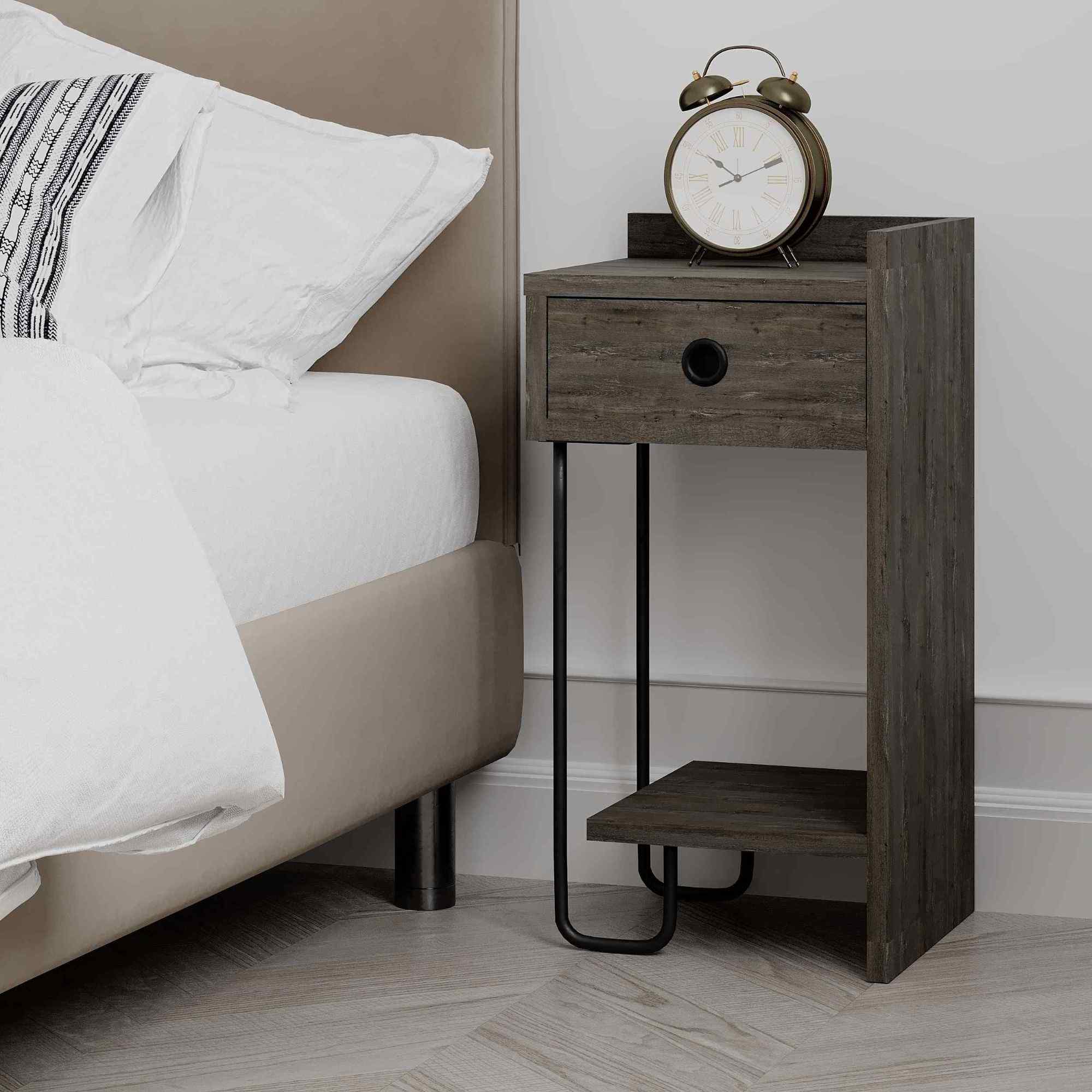 Industriálny nočný stolík SNAPE, tmavá káva, pravý