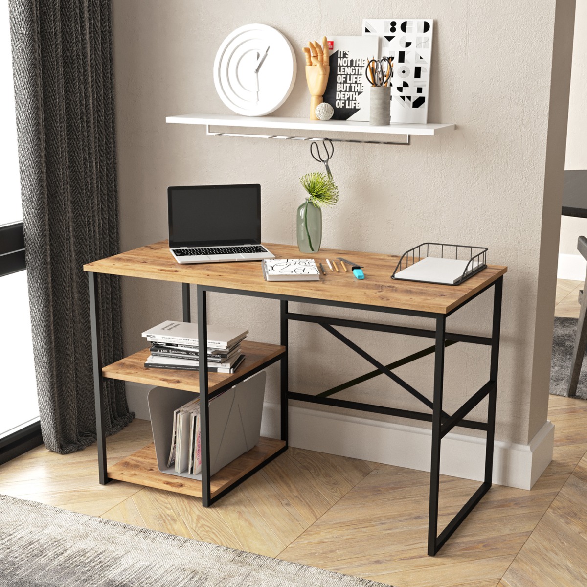 Domovská stránka » Katalóg » Industriálny písací stôl VEGY 23, borovica/čierny kov