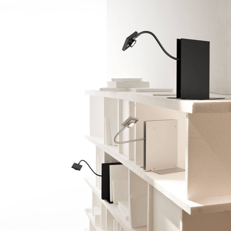 Stolná lampa LED’s Oskar – praktický stojan na knihy s diskrétnym osvetlením Stolná lampa LED’s Oskar je praktickým spoločníkom do obývačky. Či už vedľa postele na nočnom stolíku, alebo dokonca na poličke – dá sa flexibilne používať a predovšetkým je funkčný. Vďaka jasným líniám a jednoduchému vzhľadu pôsobí harmonicky v každom štýle zariadenia. Hliníkové telo ponúka úložný priestor na knihy alebo príslušenstvo vľavo a vpravo. V strede je namontovaný držiak na knihy, ku ktorému je pripojený prepínač a 400 cm dlhý kábel. Vďaka dĺžke kábla ho možno ľahko a nenápadne položiť za police a viesť k ďalšej zásuvke. Teplý biely zdroj svetla LED je namontovaný na flexibilnom husom krku. Vďaka tomuto pohyblivému kovovému ramenu je smer svetelného lúča variabilný a vždy sa dá vhodne nastaviť. Vďaka tomu je možné nastaviť efektné akcenty a šikovne zvýrazniť objekty aj v tmavších výklenkoch a rohoch. Svietidlo LED Oskar vyvinul mníchovský dizajnér Ingo Maurer so svojím tímom a je všestranné. Môže napríklad slúžiť ako polica na knihy, čo z neho robí výnimočný osvetľovací objekt. Telo svietidla je dokonalým knižným doplnkom a svietidlo poskytuje príjemné svetlo.