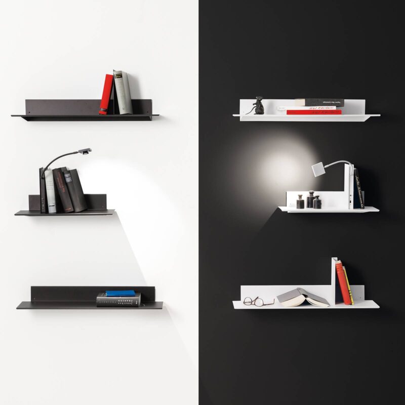 Nástenné svietidlo Oskar na polici – plávajúca polička na knihy Oskar na polici je moderné nástenné svietidlo s jasnými líniami, ktoré obsahuje aj tri praktické nástroje. Na jednej strane je lampa pripevnená k flexibilnému husiemu krku, ktorý umožňuje individuálne vyrovnanie svetla. Husí krk je pripevnený k obdĺžnikovému telu, ktoré obsahuje ďalšie zvýraznenie – port USB. Po tretie, telo spočíva na 50 cm širokej kovovej poličke, ktorá ponúka priestor na všetky druhy vecí. Svietidlo Oskar na polici vyvinul mníchovský dizajnér Ingo Maurer a jeho tím a je všestranný. Môže napríklad slúžiť ako polica na knihy alebo ako plávajúci nočný stolík vedľa postele. Telo lampy je dokonalý bookend a lampa vyžaruje príjemné svetlo pri čítaní novín alebo dobrej knihy.