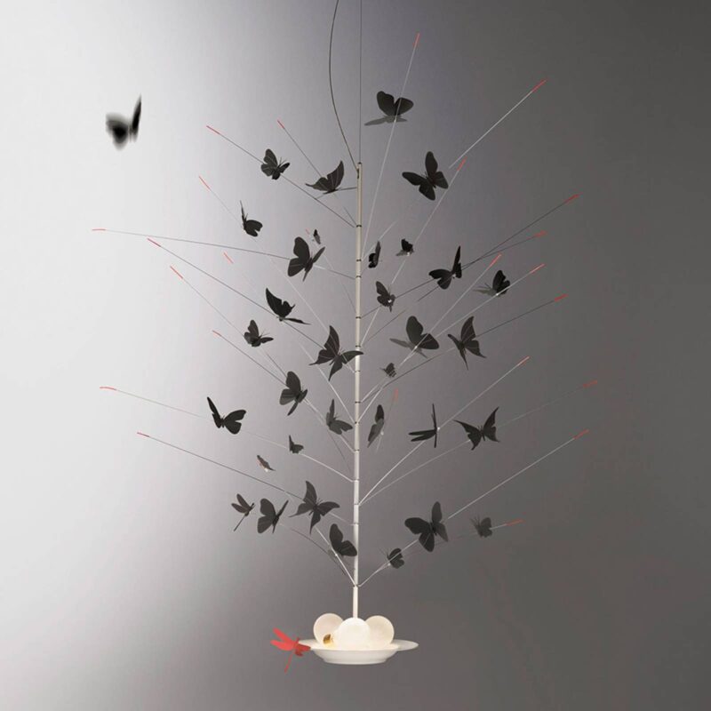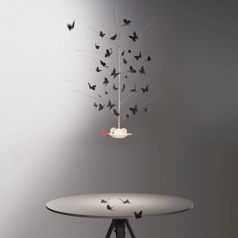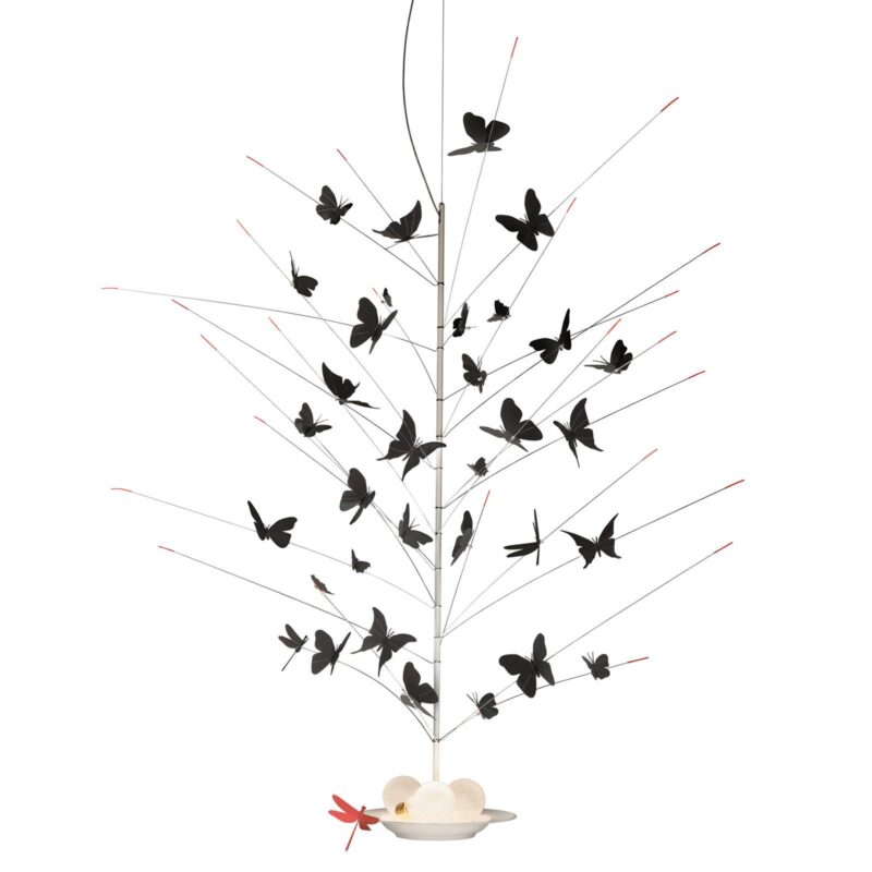 La Festa della Farfalle Sada motýľov, čierna Sada sa skladá z 34 čiernych motýľov a červenej papierovej vážky, aby bolo možné vymeniť existujúce motýle na závesnej lampe La Festa delle Farfalle. Farebná kombinácia s bielymi a čiernymi motýľmi dodáva prívesku svetlu tiež osobný nádych.