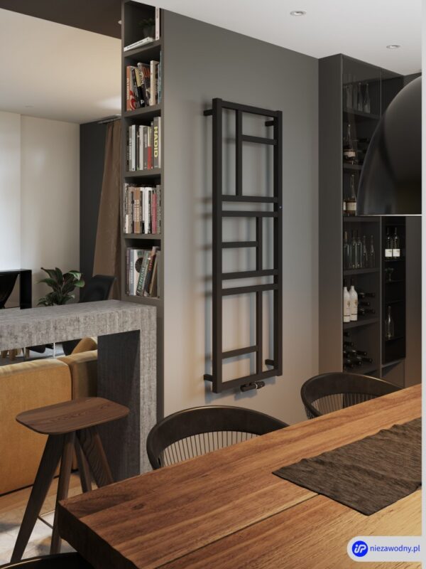 Instalprojekt – Kúpeľňový radiátor MONDRIAN – Farba radiátora – Čierna, Pripojenie radiátora – Stredové 50 mm, Rozmer radiátora – 500 x 1140 mm, výkon 417 W RADMON501131SP