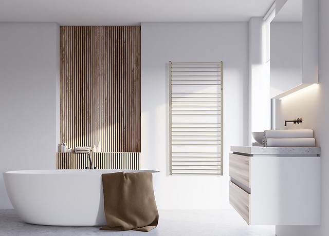 Instalprojekt – Kúpeľňový radiátor PIKO – Pripojenie radiátora – Spodná pripojenie, Radiátory – Farebné prevedenie HL – Biela, Rozmer radiátora HL – 430 × 1129 mm, výkon 432 W RADPIK401135