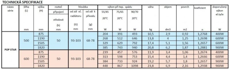Radiátor do kúpeľne už dávno nie je nudný biely rebrík. To napokon ukazuje radiátor POP STAR . Svieži design a až 22farebných variantov. Vďaka svojej konštrukcii sa na kúpeľňový radiátor ľahko vešajú uteráky. Tie rýchlo usychajú. Vykurovanie je možné pomocou elektrickej vykurovacej tyče alebo klasickým obehovým čerpadlom. Skladom rozmer 500×1190 mm a 600×1505 mm v základnej farbe C35 (white silk) a C31 (black mat). Z dôvodov Covid 19 sú výrobné kapacity závodu obmedzené. Pri neskladových modeloch sa doba dodania môže predĺžiť až na 7 týždňov od objednania. Kúpeľňové radiátory HOPA kompletne zmenia vaše predstavy o radiátoroch ako ich poznáte. Radiátory do kúpeľne sú opatrené dokonalou antikoróznou vrstvou. Až na antikoróznu úpravu je ešte len nanášaná prášková farba. Kúpeľňový radiátor je vhodný k jedno aj dvojrúrkovým vykurovacím systémom s čerpadlom. Alebo ako samostatné vyhrievacie teleso s elektrickou vykurovacou tyčou. Radiátory majú menší objem vody, veľmi rýchlo sa zahrievajú a sú výborne regulovateľné, takže si ľahko nastavíte tú správnu teplotu pre váš dokonalý komfort. Radiátory sú dodávané BEZ vykurovacej tyče, za rozmerom je iba uvedený vhodný výkon tyče pre patričný rozmer. Dostupné rozmery radiátora do kúpeľne: 500 × 875 mm, výkon 340 W, vykurovacia tyč 300 W 500 × 1190 mm, výkon 440 W, vykurovacia tyč 300 W 500 × 1505 mm, výkon 550 W, vykurovacia tyč 600 W 500 × 1820 mm, výkon 650 W, vykurovacia tyč 600 W 600 × 875 mm, výkon 390 W, vykurovacia tyč 300 W 600 × 1190 mm, výkon 495 W, vykurovacia tyč 600 W 600 × 1505 mm, výkon 615 W, vykurovacia tyč 600 W 600 × 1820 mm, výkon 735 W, vykurovacia tyč 900 W Farby podľa vzorkovníka, uvedená cena je už konečná: C12 graphite C15 granite C16 anthracite C17 silver C18 aliminium C19 grey C31 black mat C33 black structure C34 white mat C36 white structure C37 white chocolate C42 cappuccino C43 cinnamon C44 cardamom C57 ice cream C69 sparrow C70 moon C71 grey wall C73 sal t & pepper C75 black swan C76 black horse Pokiaľ si teda rozhodnete prefarebné prevedenie radiátora, tak si prosím vo vzorkovníku (nižšie na stránkach na stiahnutie) vyberte farbu a názov s číselným označením farby vložíte do poznámky pri objednávke. Radiátory v takto zvolenom variante sú iba na objednávku, dodacia doba je 4 až 6 týždňov. ZÁRUKA 8 ROKOV(GT) Ean: 8596462566496