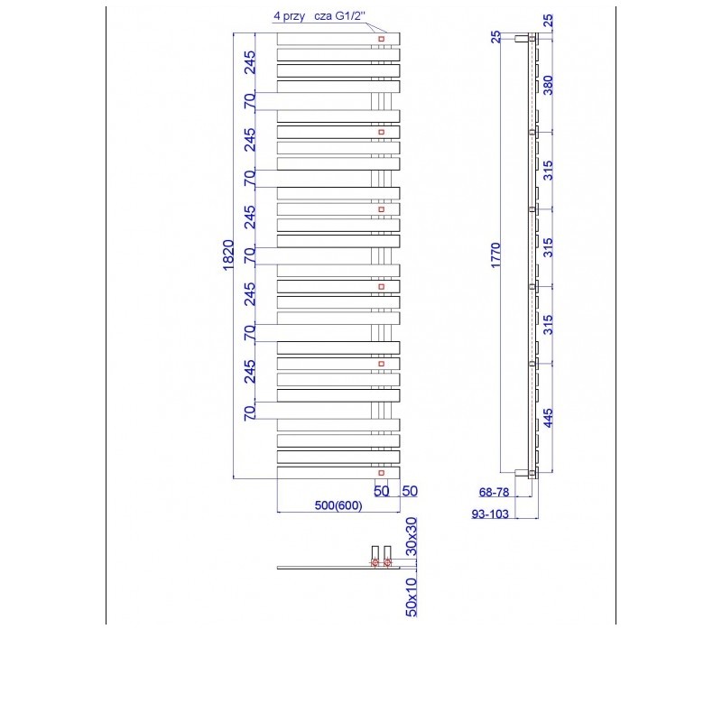 Instalprojekt – Kúpeľňový radiátor POP STAR – Farba radiátora – Biela, Rozmer radiátora – 500 × 1820 mm, výkon 650 W RADPOP501835