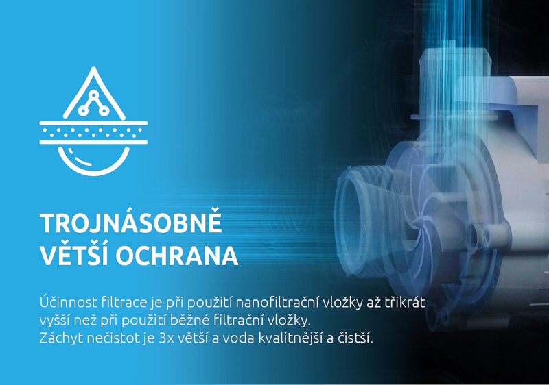 vysoká účinnosť filtrácie a zlepšenie kvality vody (3x väčší záchyt)