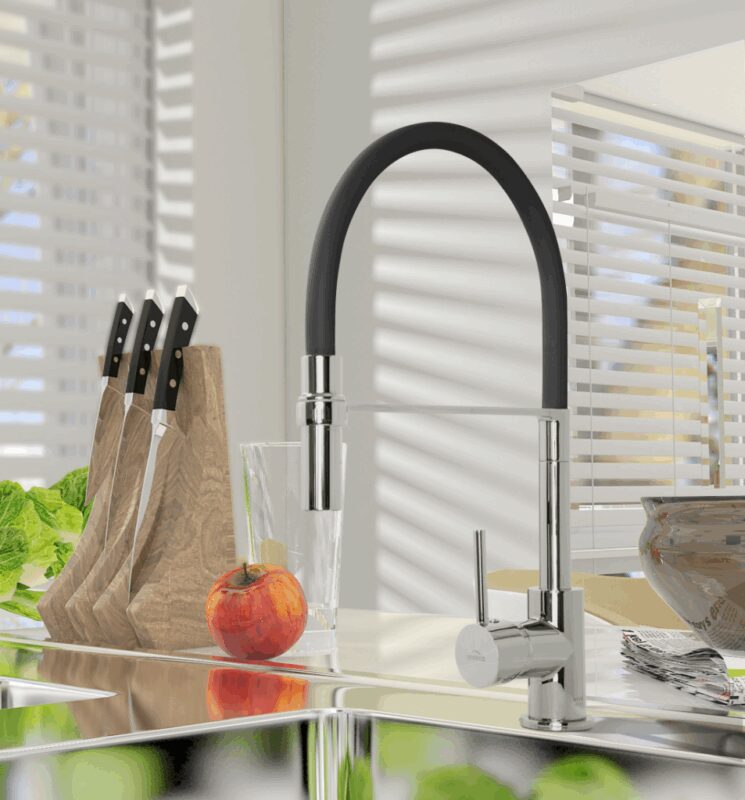 Kuchynská batéria KAMELEON je dostupná v 6 farbách. Čierna, biela, šedá, béžová, červená a limetková vám umožní vyšantiť sa vo farbách v kuchyni. Moderný dizajn a funkčnosť potešia vášnivých milovníkov kulinárstva!