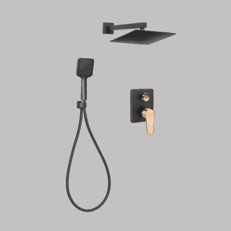 Podomietkový set Midnight je kombináciou najmódnejších farieb v interiéroch – čierna a ružové zlato. Sada je vybavená podomietkovou batériou , hlavovou sprchou a ručnou sprchou .