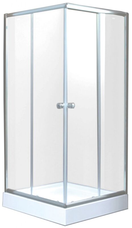 Štvorcový sprchovací kút PARLA s transparentným sklom je dostupný v dvoch veľkostiach: 80×80 cm a 90×90 cm.
