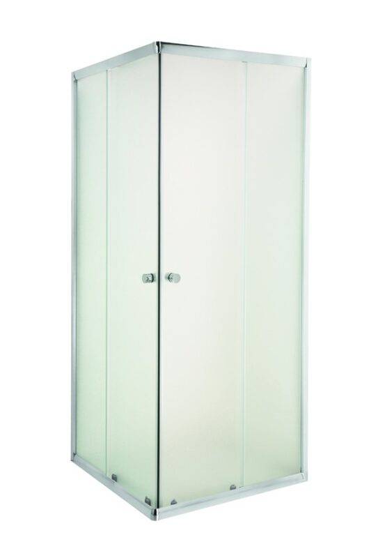 Štvorcový sprchovací kút PARLA s mrazeným sklom je dostupný v dvoch veľkostiach: 80×80 cm a 90×90 cm.