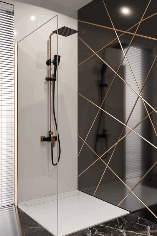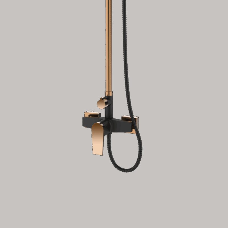 Sprchový stĺp s hlavovou sprchou zo série MIDNIGHT je perfektnou voľbou pre ľudí, ktorí majú radi nadčasové riešenia. Sprchový stĺp čiernej farby v kombinácii s ružovým zlatom dodá vašej kúpeľni zmyselný charakter.