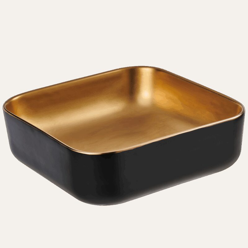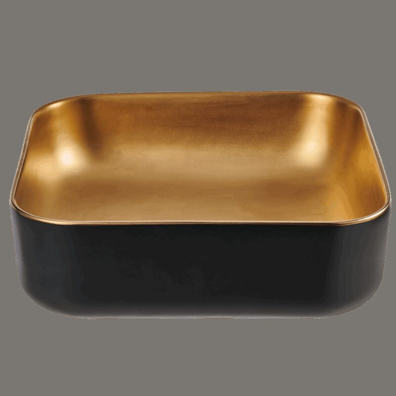 INVENA – Umývadlo na dosku MALAGA TREND 39 cm, štvorcové čierna zlatá CE-39-017-C
