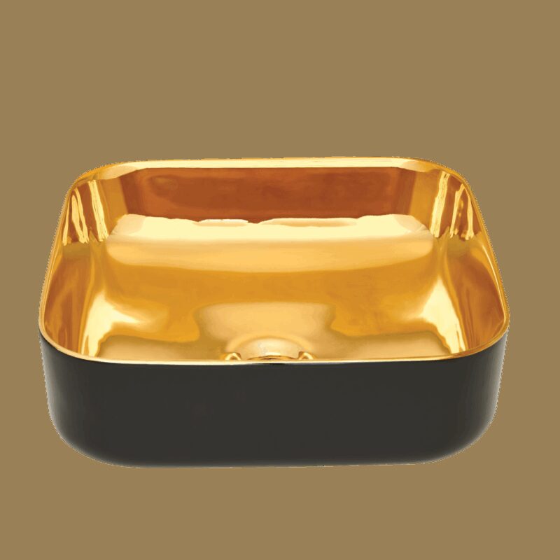 INVENA – Umývadlo na dosku MALAGA TREND 39 cm, štvorcové čierna zlatá lesk CE-39-027-C
