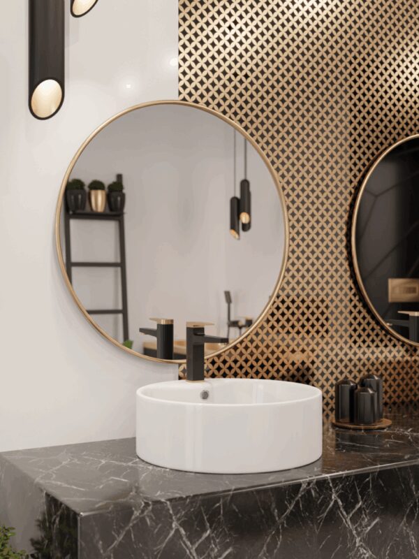 Umývadlová batéria Midnight Black Gold Rose je inovatívne a elegantné spojenie dvoch unikátnych farieb v interiérovom dizajne. Batéria je jednopáková , keramická kartuša má 25 mm. Súčasťou batérie je aj silikónový prevzdušňovač Neoperl, ktorý účinne šetrí vodu a čierna kľuk-klak výpusť.