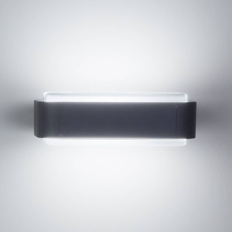 Sticker – jednoduché vonkajšie nástenné svietidlo s LED žiarovkou Vonkajšie nástenné LED svietidlo Sticker kombinuje modernosť s jednoduchosťou. Tmavosivý hliníkový rám a robustný plastový difuzér z nej okrem toho robia nadčasový a prispôsobivý kúsok. Teplé biele LED svetlo je vyžarované smerom nahor a nadol na stenu. Tým sa dosiahne pekný efekt na vonkajšej fasáde, ktorý aj naďalej pôsobí veľmi dekoratívne. Vďaka IP65 je svietidlo chránené proti akýmkoľvek poveternostným vplyvom.