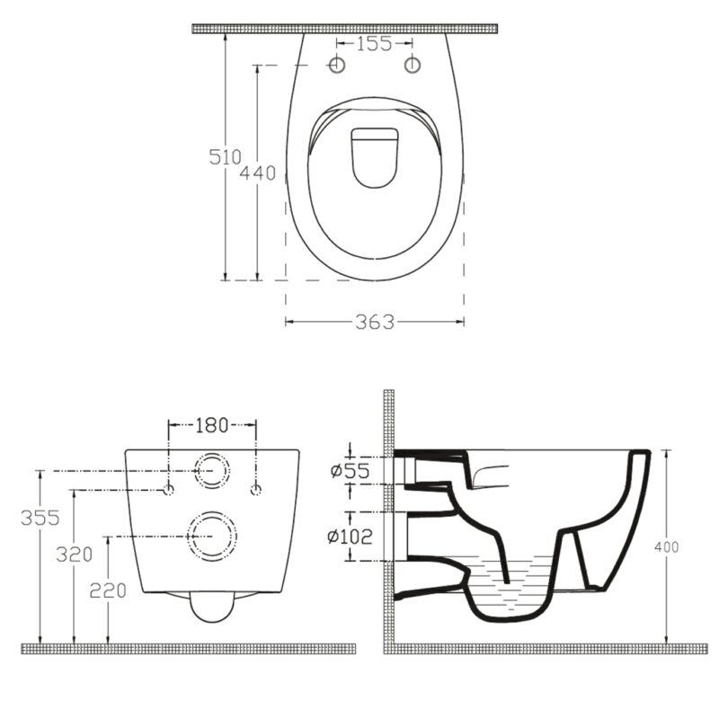 Rimless (NoRim) – toalety bez tradičného oplachového kruhu. Hladký povrch bez dutín a záhybov. Oplachová voda vyteká rozdeľovačom vody iba zo zadnej časti WC misy a vďaka špeciálnemu tvaru keramiky dokonale opláchne vnútorný priestor. Výhodou je ľahká údržba a čistenie WC misy.
