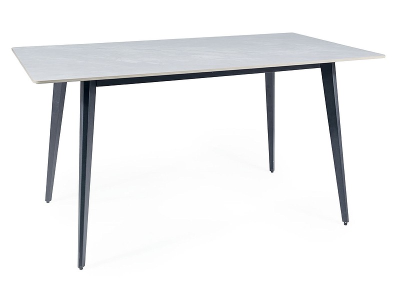 Jedálenský stôl IVA je v atraktívnom a modernom prevedení. Je vhodný do rôznych typov interiérov, modernej kuchyne, či jedálne. Doska stola je keramická. Je s efektným prevedením mramoru. Nohy sú vyrobené z kovu. Farebné prevedenie: šedá efekt mramor, čierna.Rozmery (š,h,v): 140 x 80 x 75 cm.  Je vhodný pre 6 osôb.Dodávame v demontovanom stave.