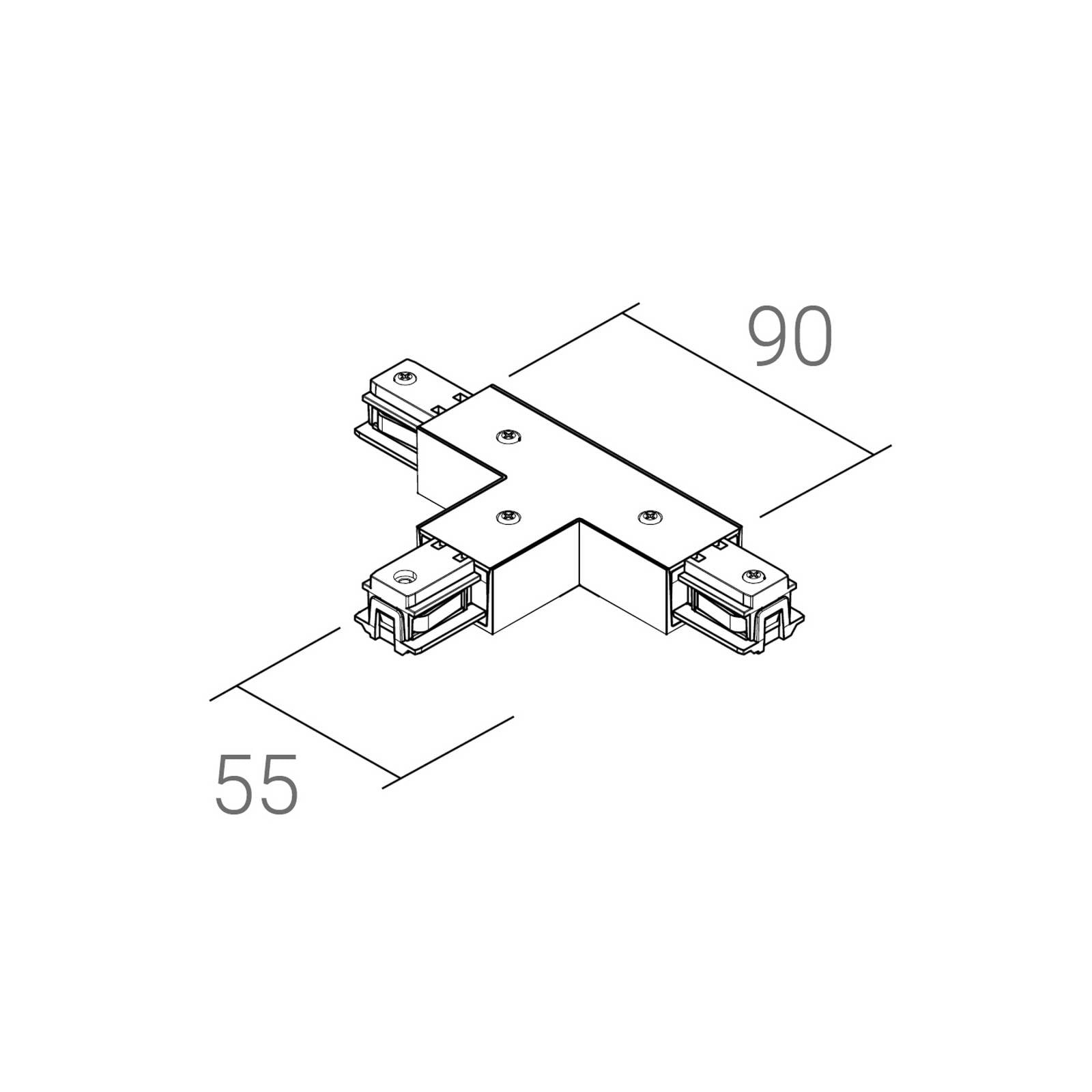 T-spojka pre SQUARE 48 V prúdové lišty od Ivela – ochranný vodič vľavo Táto T-spojka s ochranným vodičom na ľavej strane je určená pre nízkonapäťové prúdové lišty SQUARE 48 V od Ivela. T-spojka umožňuje spojenie troch lišt v pravom uhle. Skriňa je vyrobená z 30 % sklenenými vláknami vystuženého nylonu.