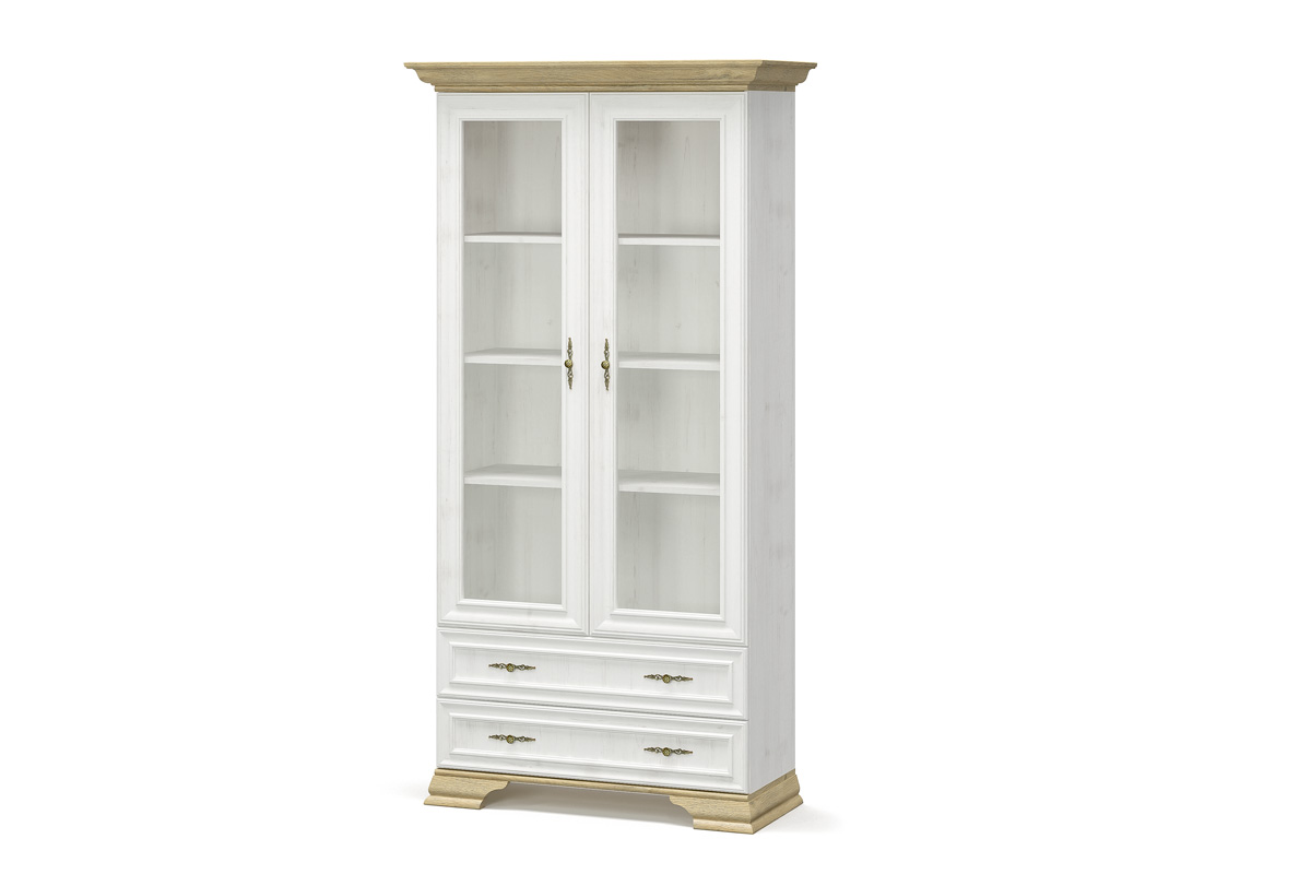 JARMANKA 2W2DRW vysoká vitrína, borovica/dub zlatý