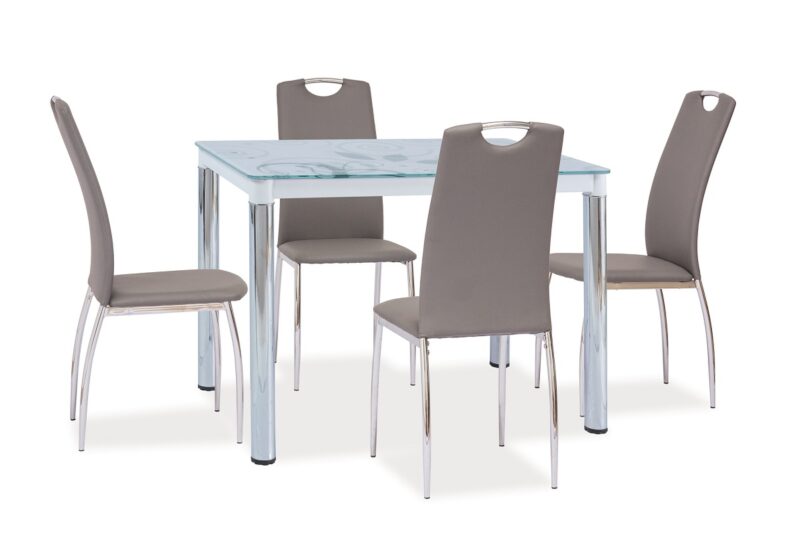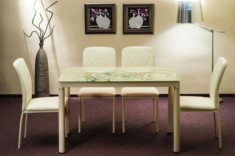Zaujímavý stôl do jedálne TAMAR s dekoračným vzorom na vrchenj doske. Farebné prevedenie krém. Nožičky sú z kovu. Vrchná doska je z tvrdeného skla. Rozmer (v/š/h) 75 x 100 x 60 cm. Je vhodný pre 4 osoby. Dodávame v demonte. V ponuke aj biely a čierny