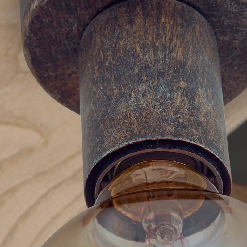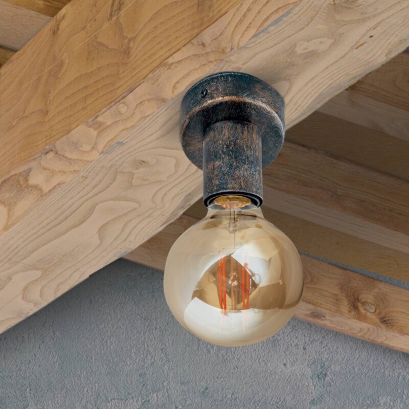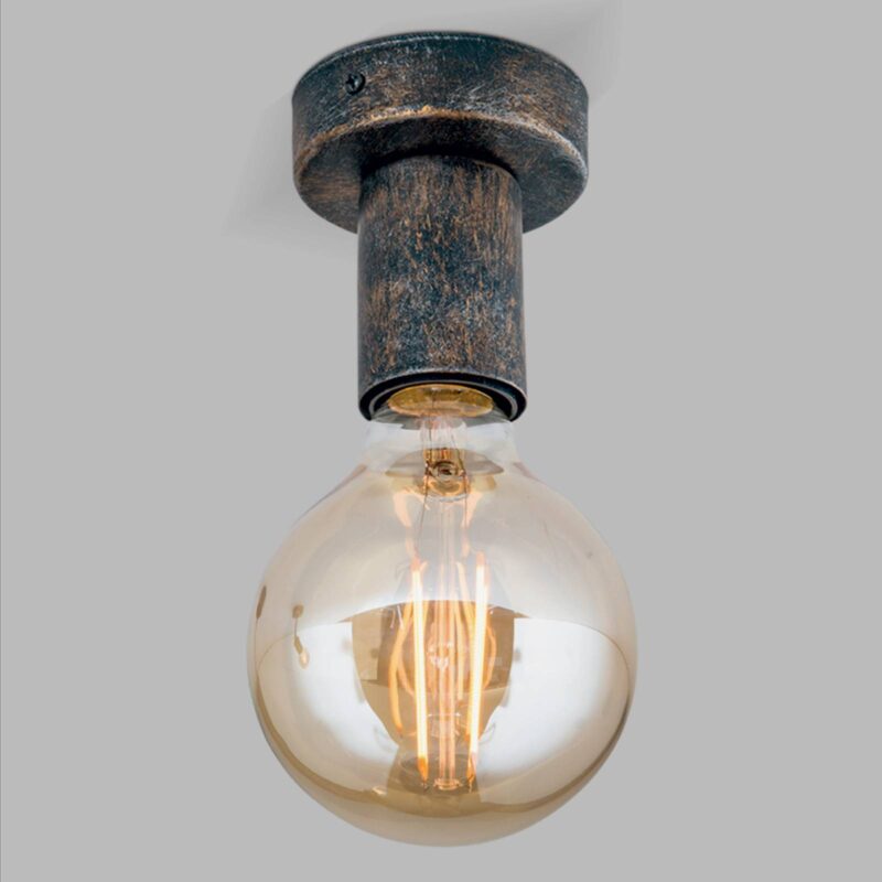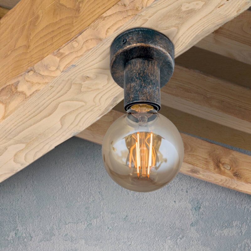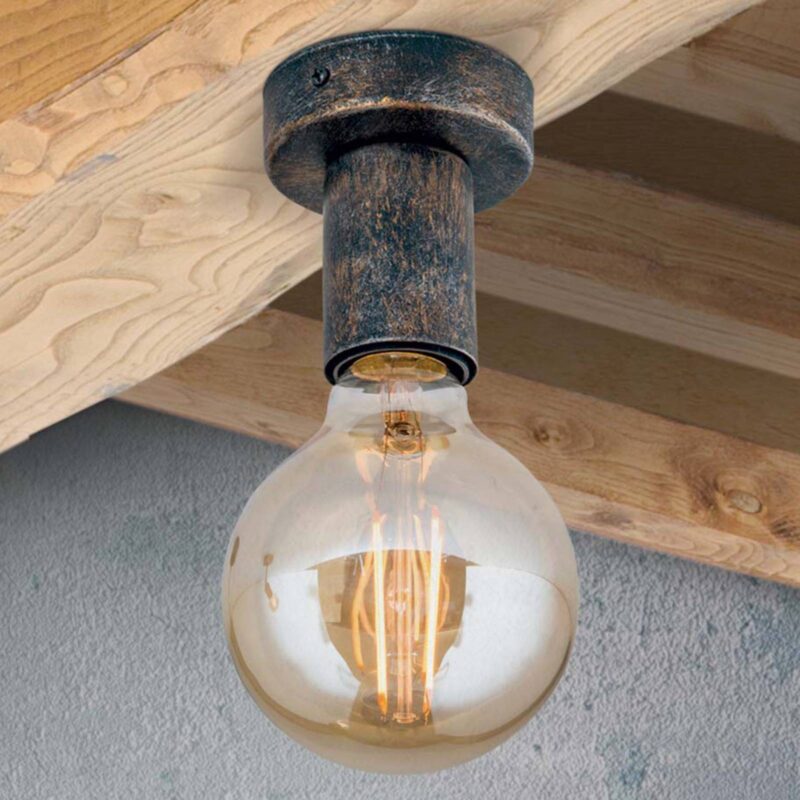 Zredukované na to, čo je podstatné: stropné svietidlo Rati Dizajn stropného svietidla Rati poteší puristov i priaznivcov vintage štýlu. Jeho vzhľad bol totiž zredukovaný na stropný držiak a objímku, resp. kašírovanie objímky. Okrem toho sú tieto kovové prvky opatrené hrdzavohnedou povrchovou úpravou a šíria tak rustikálne kúzlo. To sa však ešte umocní, keď sa použije vintage žiarovka. Použiteľné aj ako nástenné svietidlo.