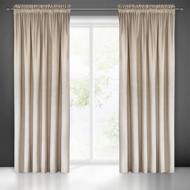 Jednofarebný béžový zamatový záves na riasiacu pásku 140 x 270 cm