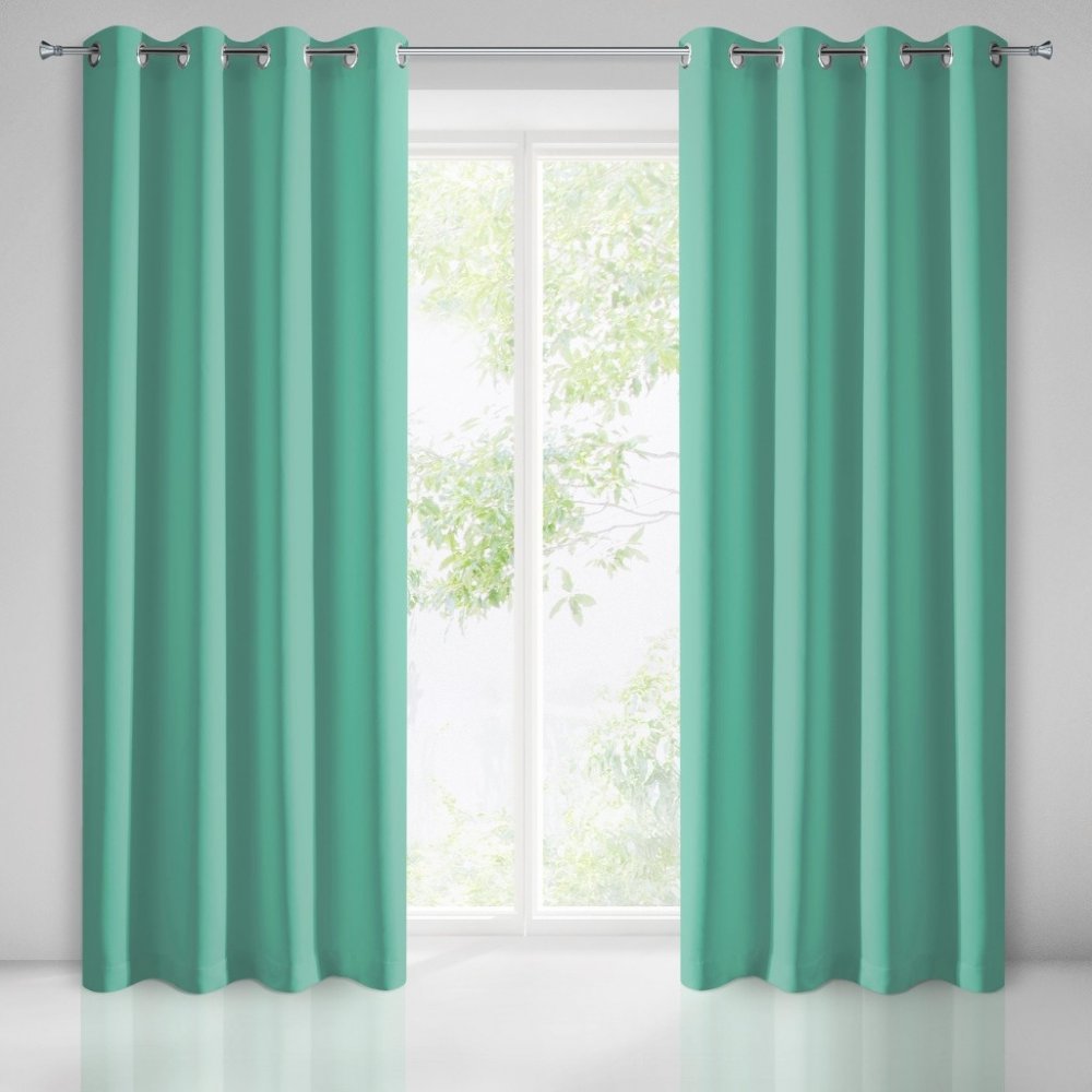 Jednofarebný tmavo mentolový záves so zavesením na kruhy 140 x 250 cm