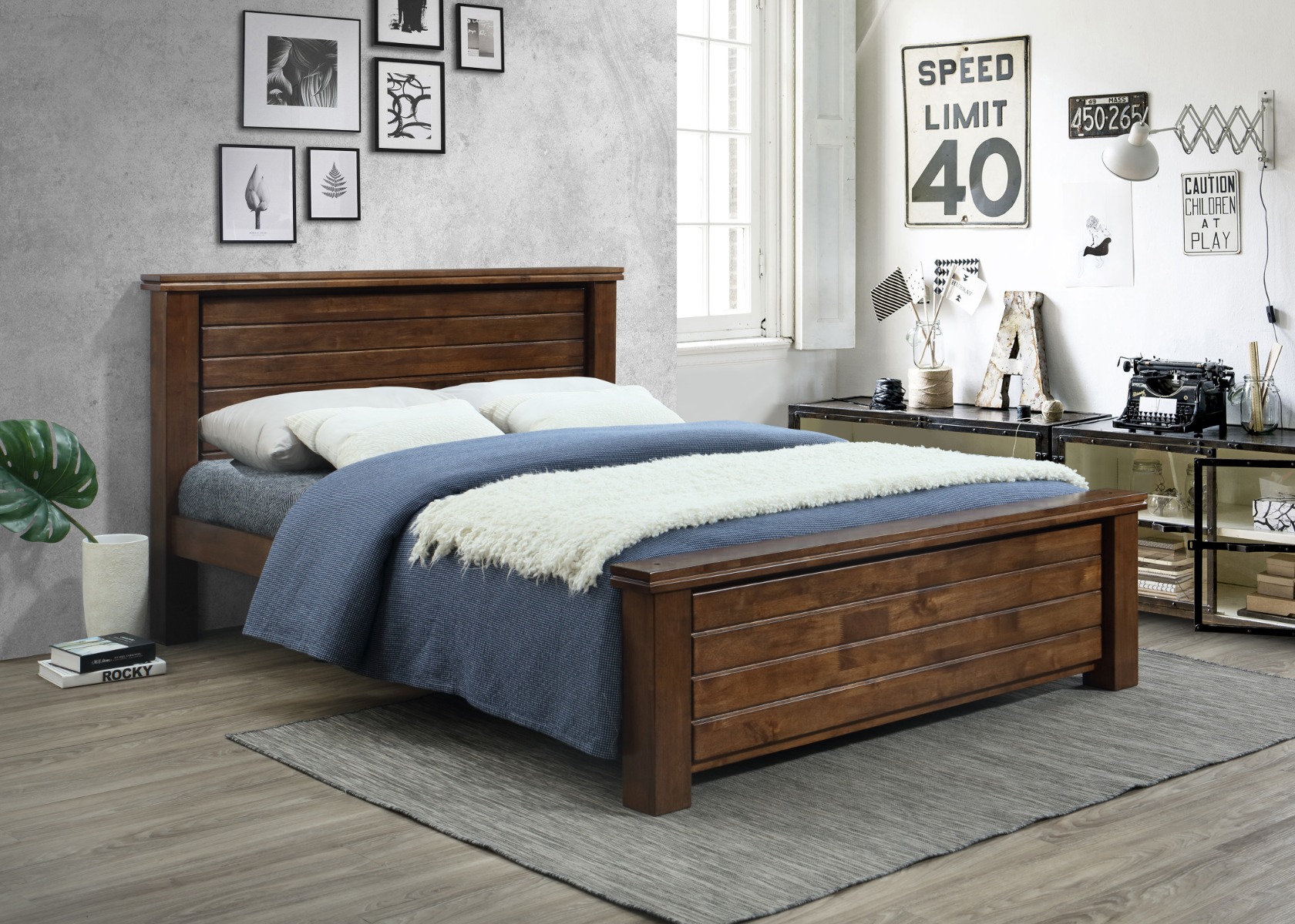 Posteľ JERSEY KING 180 je výnimočným kusom nábytku. Zaujme štýlovým prevedením oboch čielok postele, ktoré sú zakončené frézovanými prvkami. Zadné vyvýšené čelo ponúka opierku hlavy a chráni stenu pred oderom. Štýlový vzor čiel a široké nohy vytvárajú unikátny celok, ktorý sa stane ozdobou každej spálne. Posteľ je vyrobená z masívneho dreva v odtieni vlašský orech. Viditeľnosť štruktúry dreva vytvára efektný vzor a spája viacero prírodných odtieňov masívu. Farba na zakúpenom výrobku môže mať preto odchylky od zobrazenia na fotografii. Posteľ ponúka spaciu plochu 180 x 200 cm. Lamelový rošt so stredovou doskou a 4 podpornými nožičkami je v cene. Celkový počet lamiel je 13 (rozmer lamely je 14 x 63 mm). Matrac je potrebné doobjednať. Odporúčame rozmer 180 x 200 cm, resp. 2 ks 90 x 200 cm. Rozmery (š/v/h): 185 x 102 x 218,8 cm. Výška roštu od zeme je 26,15 cm. V ponuke aj nočný stolík z rovnakej kolekcie JERSEY KING. Dodávame v demonte.
